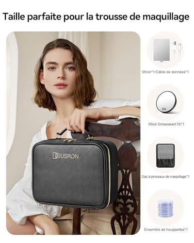 La Trousse de Maquillage JUSRON est un accessoire indispensable pour toutes les passionnées de beauté. Dotée d'un miroir LED à 3 modes d'éclairage, cette trousse de rangement cosmétique est conçue pour répondre à tous vos besoins en matière de maquillage, que ce soit à la maison ou en déplacement.
